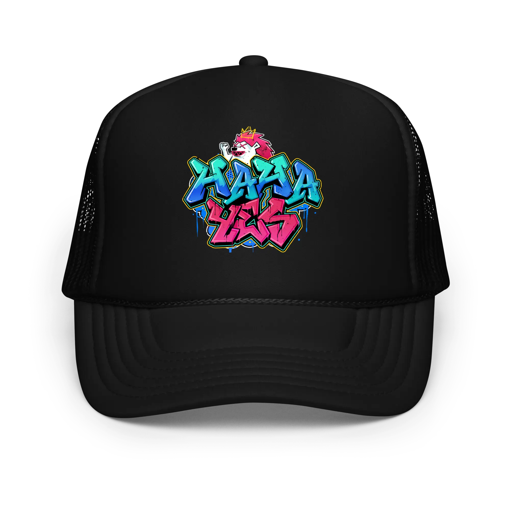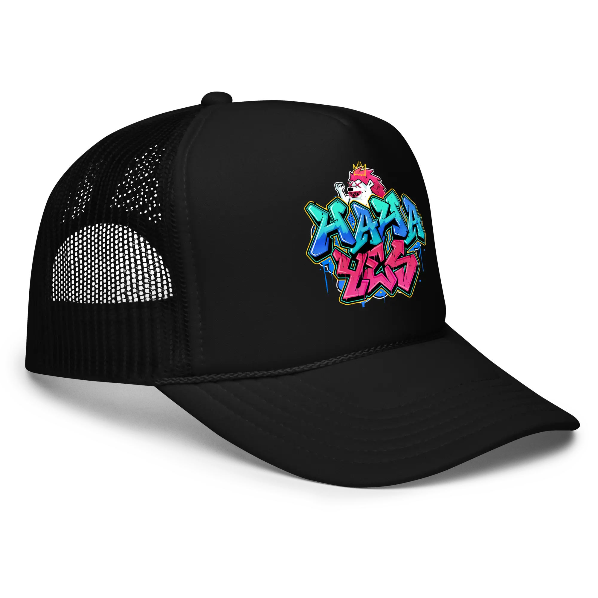 The HahaYes Street Graffiti trucker hat makes a bold statement, you’ve got style!
